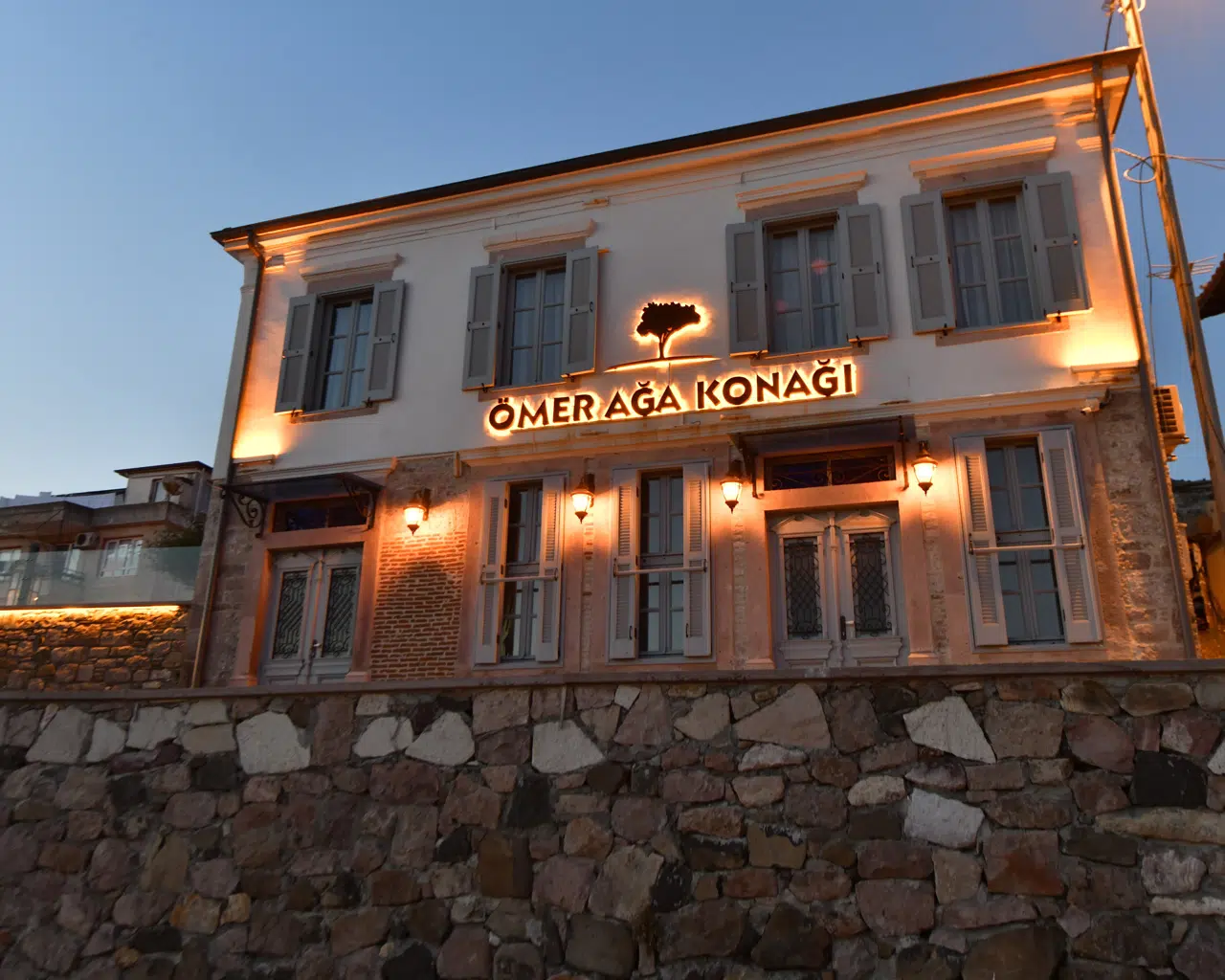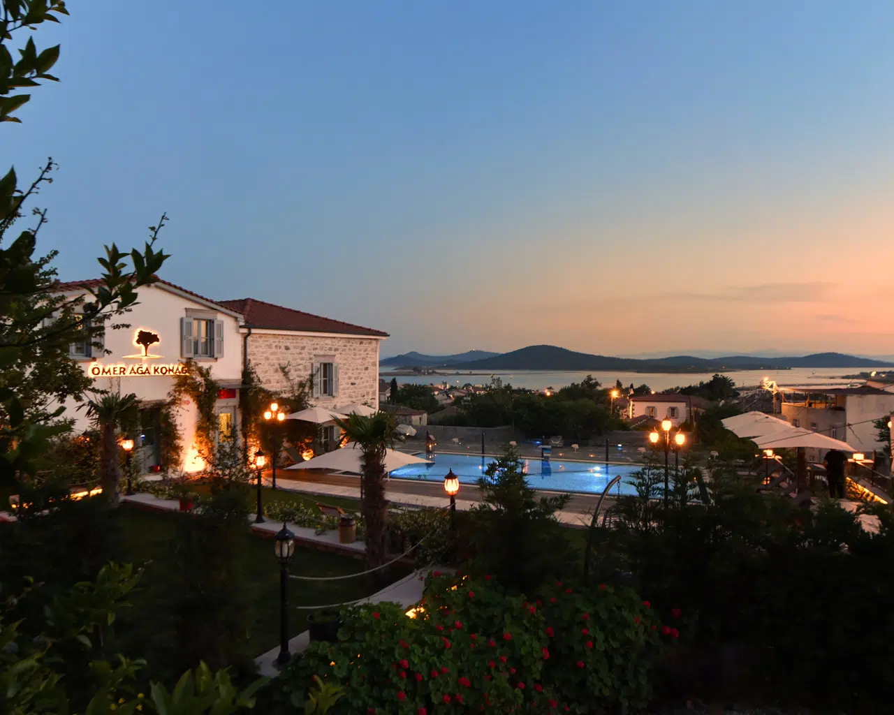 Ömer Ağa konağı; Geniş bir avlunun etrafında, kocaman bahçesi, muhteşem Cunda manzarası ile geçmişi boyunca bir dolu anıya sessizce ev sahipliği yapmış, zeytin ağaçları arasına serpiştirilmiş çok özel bir evde tarihin gölgesinde yepyeni anılar biriktirmek isteyen misafirlerini ağırlamaktadır