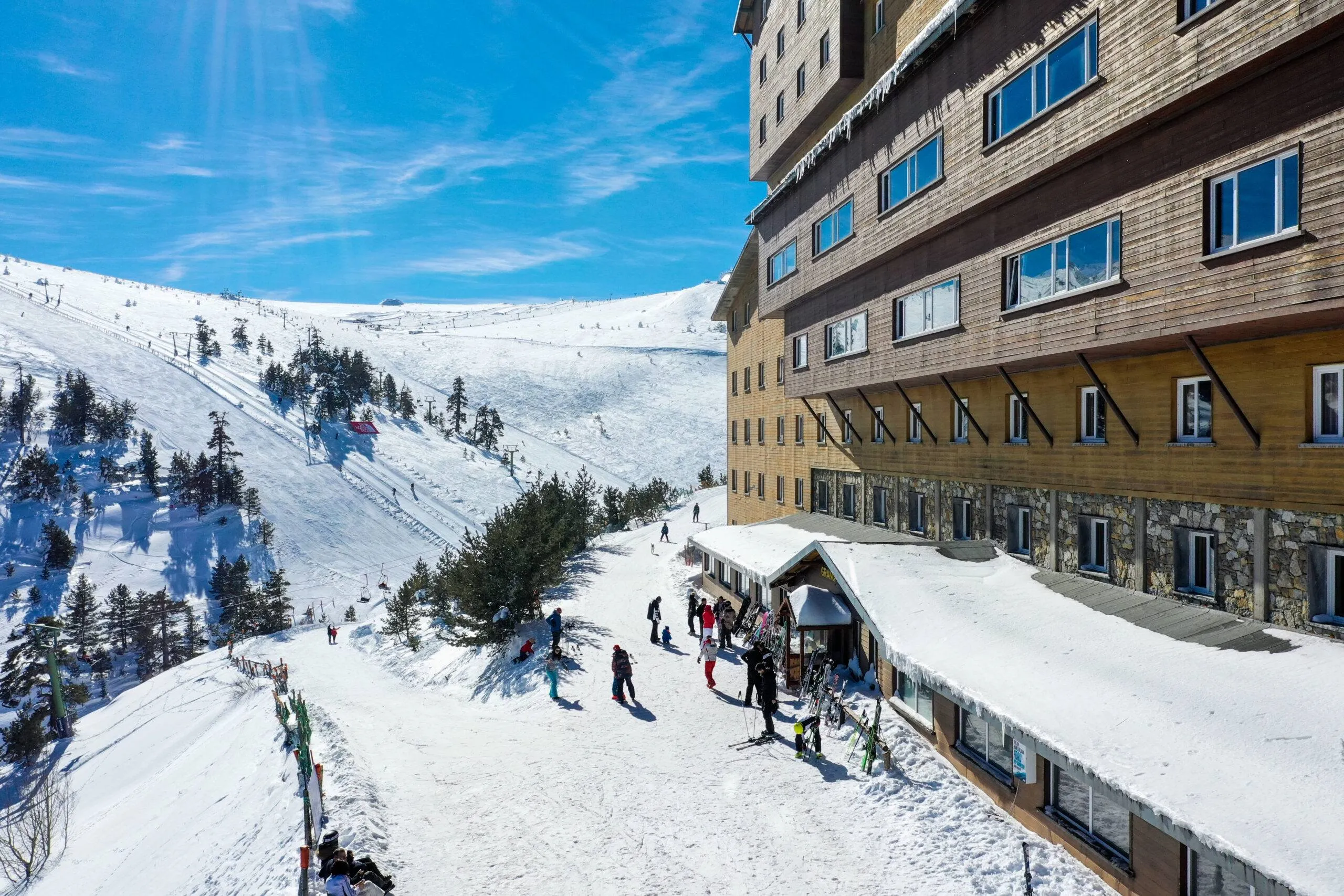 Snowboard ve kayak tutkunları başta olmak üzere Grand Kartal Otel, Köroğlu Dağların' da sizlere güzel bir tatil deneyimi sunmak için kapılarını açıyor. Köroğlu Dağları' nın benzersiz güzeliğiyle bambaşka gözüken tesis 20-22 km uzunluğunda pistler ve 7 adet lift bulunmaktadır. Tesiste kayak aktivitilere hava durumuna göre kullanım sağlanıyor. Tesiste sabah , öğle ve akşam açık büfe olarak lezzetli yemekler sunulmakta olup tesisin bünyesinde olan Paşa Kafe ve Kozalak Kafe' de bir şeyler yiyip içebilirsiniz. Grand Kartal Otel aynı zamanda sizlere ücretli olarak Kayak ve Snowboard öğretmek için ders imkanıda sunuyor. Eğlenmek isteyenler için Canlı Müzik Etkinlikleri haricinde de rahatlamak ve tüm günün yorgunluklarını atabileceğiniz Wellness ve Spa bölümünede sahip olan tesis ücretli masaj hizmetleri, Jakuzi ve Sauna imkanlarınıda sunmaktadır. Tesiste Bebek Bakım Odası, küçük misafirler için Çocuk Kulübü ve aynı zamanda Bebek Büfeside bulunmaktadır. Tabi spor severleri unutmamak gerekiyor onlar içinde tatilde sporlarını aksatmamları için tesis içerisinde Fitness Merkezide mevcut. Kartalkaya Kayak Merkezi'nde bulunan tesis ulaşım olarak Bolu mekeze 35 km mesafede olup İstanbul Sabiha Gökçen Havaliman' ına 270 km, Esenboğa Havaliman' na 180 km mesafe uzaklıktadır.